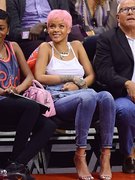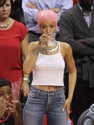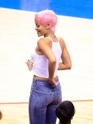 Rihanna nipple slips. After those Rihanna topless pictures that we had on the site last time it’s good to see that she decided to continue in the same rhythm, precisely similar… To be fair, I’m not sure Rihanna is actually a Clippers fan. She seems to be at games for lots of different teams. She certainly gets the good seats. The last game I went to at the Staples Center I had to wear an oxygen tank to reach my seats. But I guess when you’re a hot bodied pop diva who hates bras, you get preferred seating. Fair enough. Nobody needs to see my pasty face eating a hot dog. Anyway, I’m glad that it was pretty chilly there and with Rihanna nipples we have a good sight of her ass in tight jeans she fills very nicely… This bitch surely knows how to makes my pants tight. Enjoy.