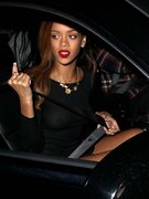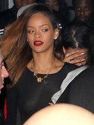 Rihanna boobs, nipple slips. You can basically see Rihanne nude as she walks in front of the cameras in a see through dress. In red lipstick and a thong she moves down the sidewalk to her car, the flashes from the cameras lighting up her body and giving us a view of her celeb nipples.
